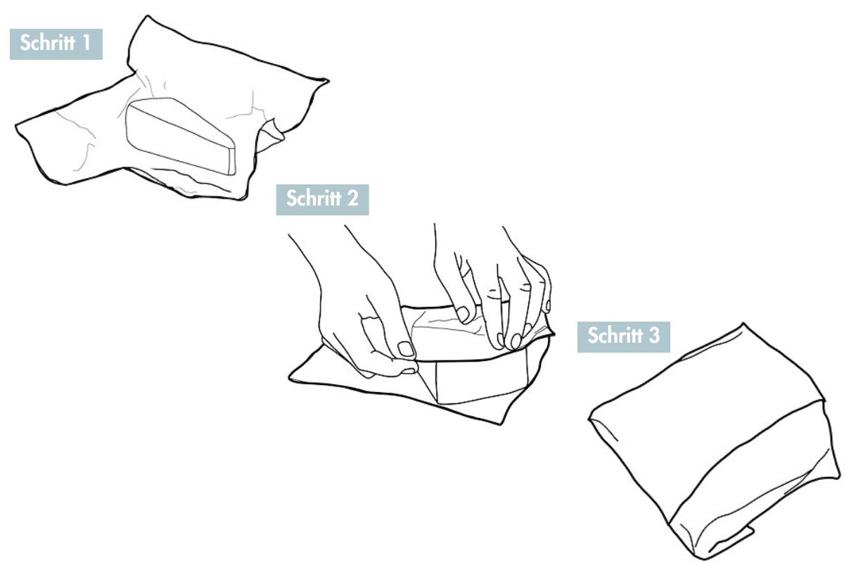 Schritt 1: Lebensmittel ins Tuch legen.